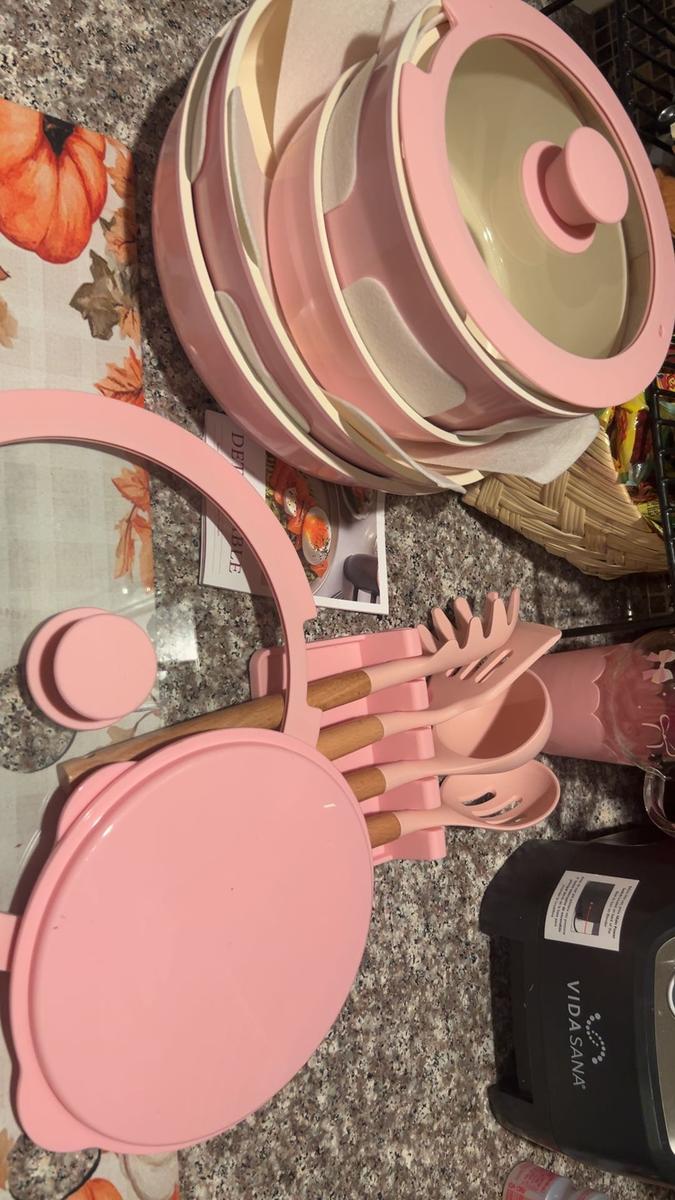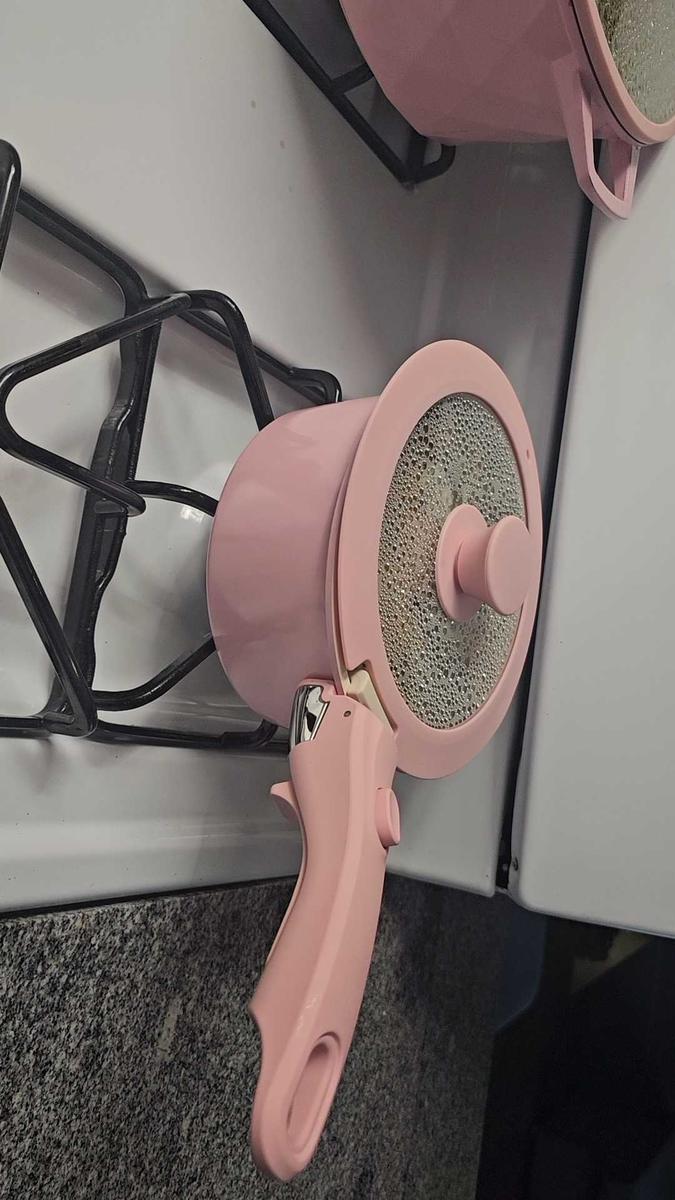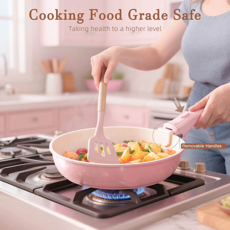 Upgrade your kitchen with this nonstick ceramic cookware set. Its easy-to-clean surface and detachable handles make cooking and storage a breeze.
